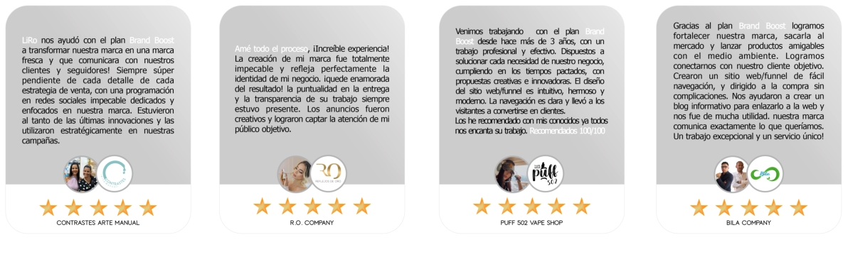 Nuestro Metodo/Plan BRAND BOOST es un desarrollo integral que incluye la creación de una marca única, atractiva y profesional que compita de frente